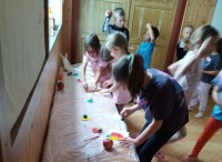 Čekaly nás úkoly jako seřazování, jablíčková překážková dráha, vytváření, razítkování, malování a za odměnu pro nás paní Zoubková měla připraveno několik nafukovacích balónků všech možných tvarů.
