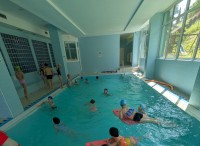 Záměrem plaveckého výcviku bylo osvojit si základní dovednosti plavání. Výuka byla strukturována tak, aby děti postupovaly krok za krokem – od prvního ponoření, přes nácvik správného dýchání a splývání, až po zvládnutí základního kopání a u některých dětí i pohybů paží v kraulovém stylu. Cílem nebylo naučit děti plavat v konkrétním plaveckém stylu, ale vytvořit pevné základy, na kterých mohou dále stavět. Téměř všechny děti během výcviku tyto dovednosti zvládly, byly velmi šikovné a udělaly velký pokrok. Mnohé překonaly své počáteční obavy z vody a s radostí se pouštěly do nových úkolů. Plavecký výcvik probíhal pod vedením pedagogických pracovníků naší školy, kteří během roku absolvovali lektorský výcvik pro výuku plavání. Tento přístup jsme zvolili záměrně – umožnil nám vytvořit důvěrnější, individuálnější a přívětivější prostředí, ve kterém se děti cítily bezpečně a mohly se soustředit na svůj rozvoj.
